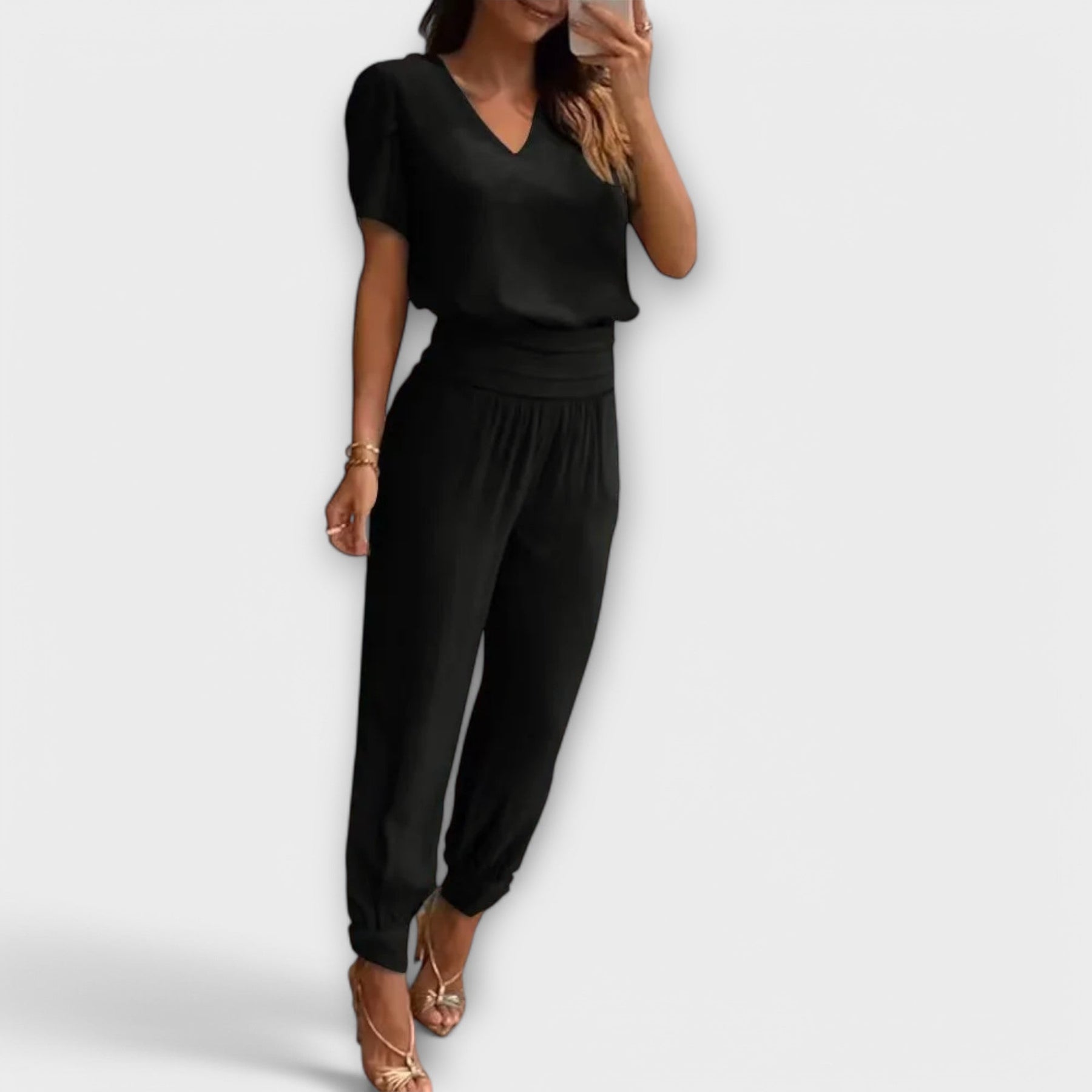 Cristiana komplet kombinira moderni dizajn s maksimalnom udobnošću. Njegov kroj naglašava siluetu, dok visokokvalitetni materijali pružaju izvanredan osjećaj udobnosti. Bilo da se radi o opuštenoj šetnji gradom ili formalnom sastanku, ovaj komplet je idealan izbor za svestrane lookove.
