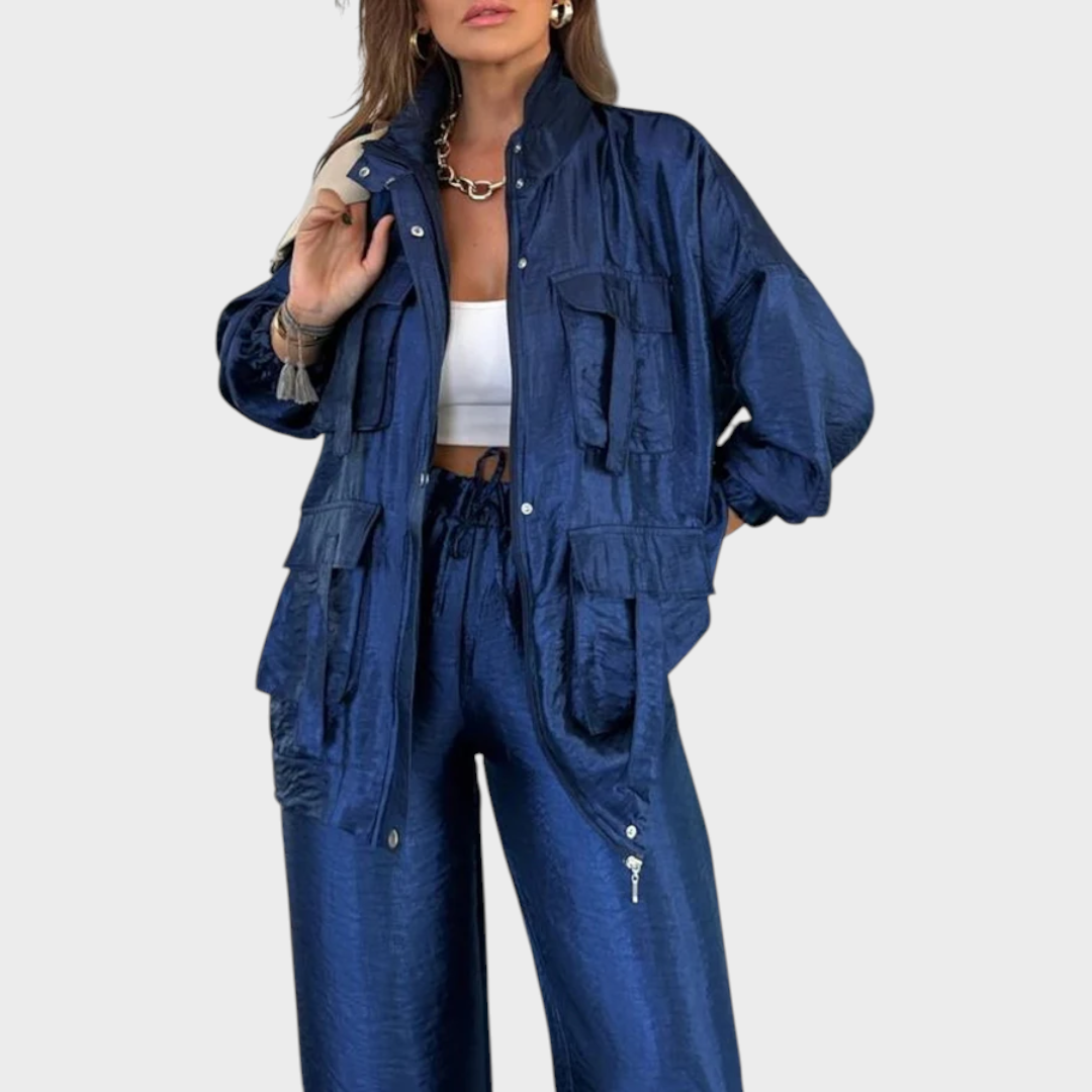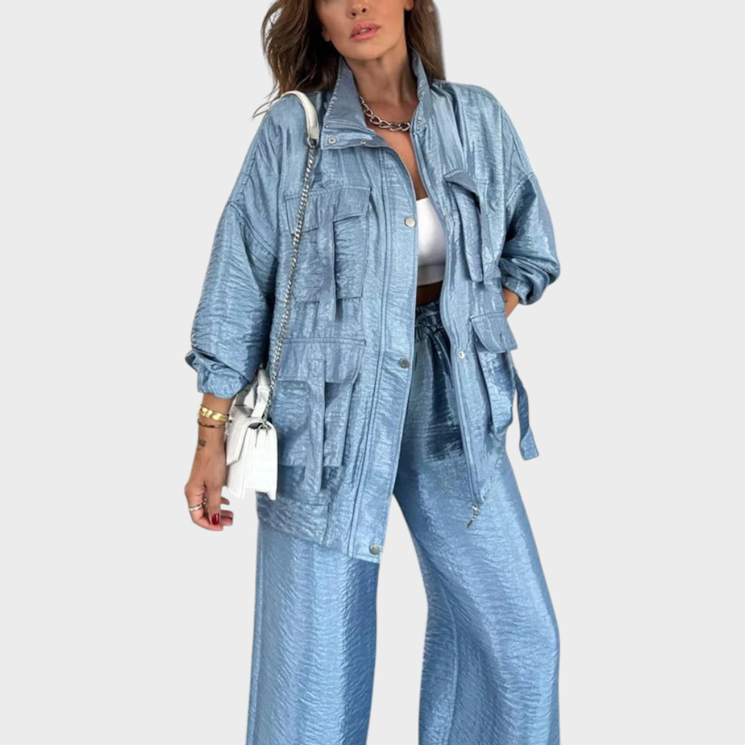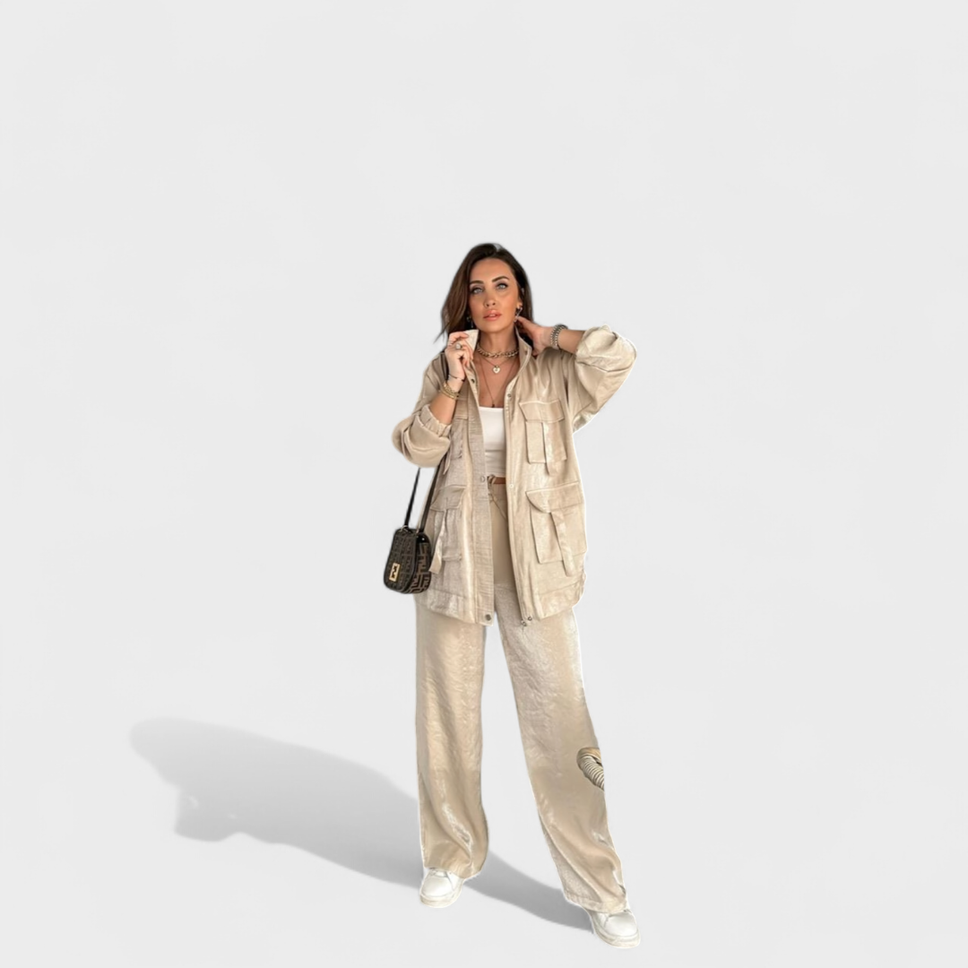 Ovaj set je savršen izbor za one koji vole spojiti udobnost i sofisticiranost u svakodnevnom životu. S fluidnim krojem i modernim detaljima, prilagođava se različitim prilikama, od ležerne šetnje do odvažnijeg urbanog izgleda.